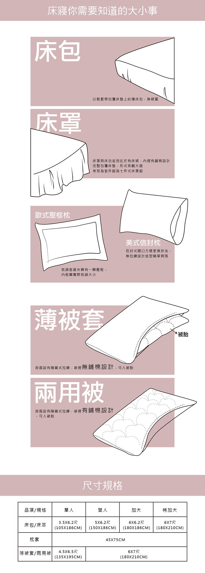 單人/雙人/加大/特大床包枕套兩用被套四件組、