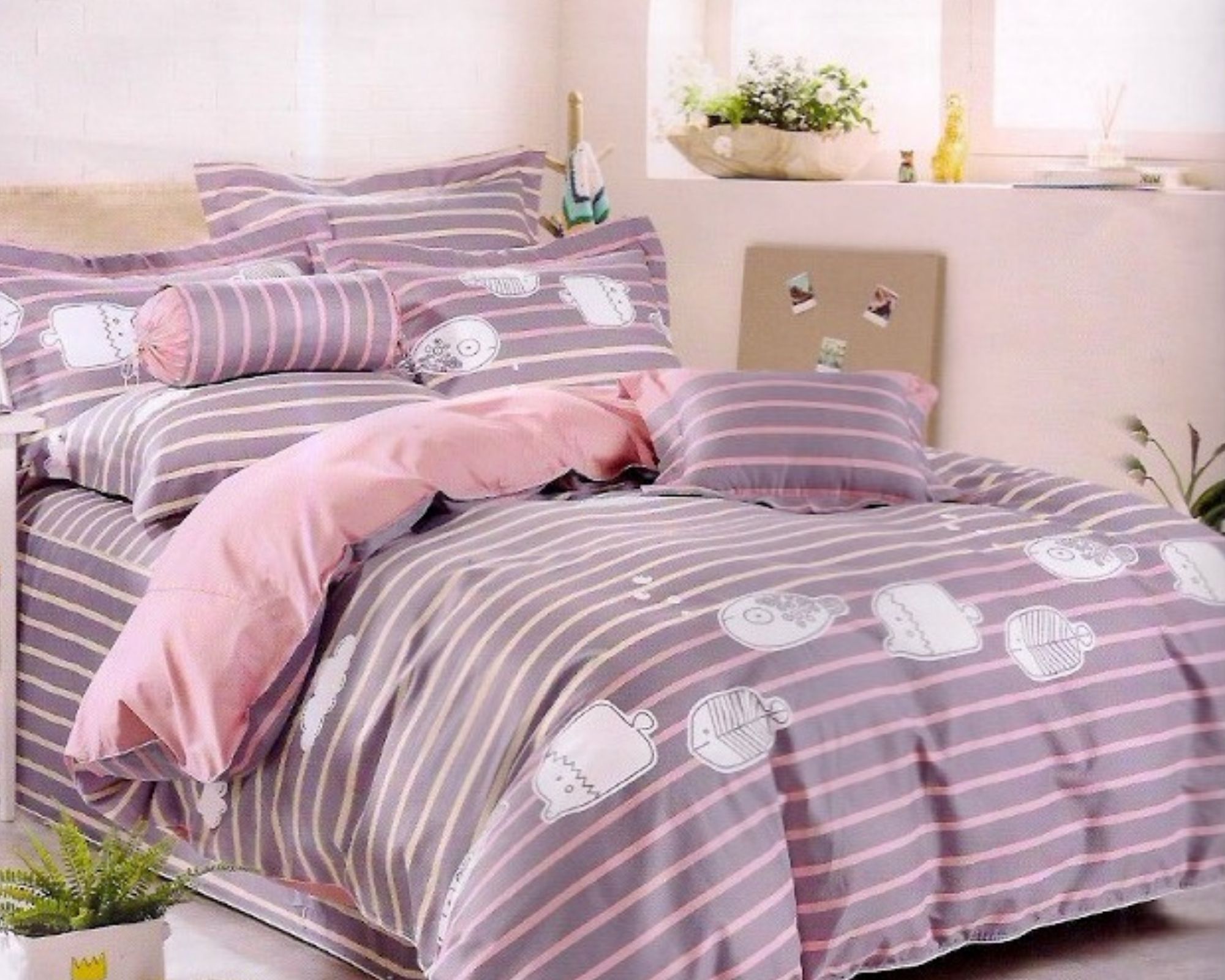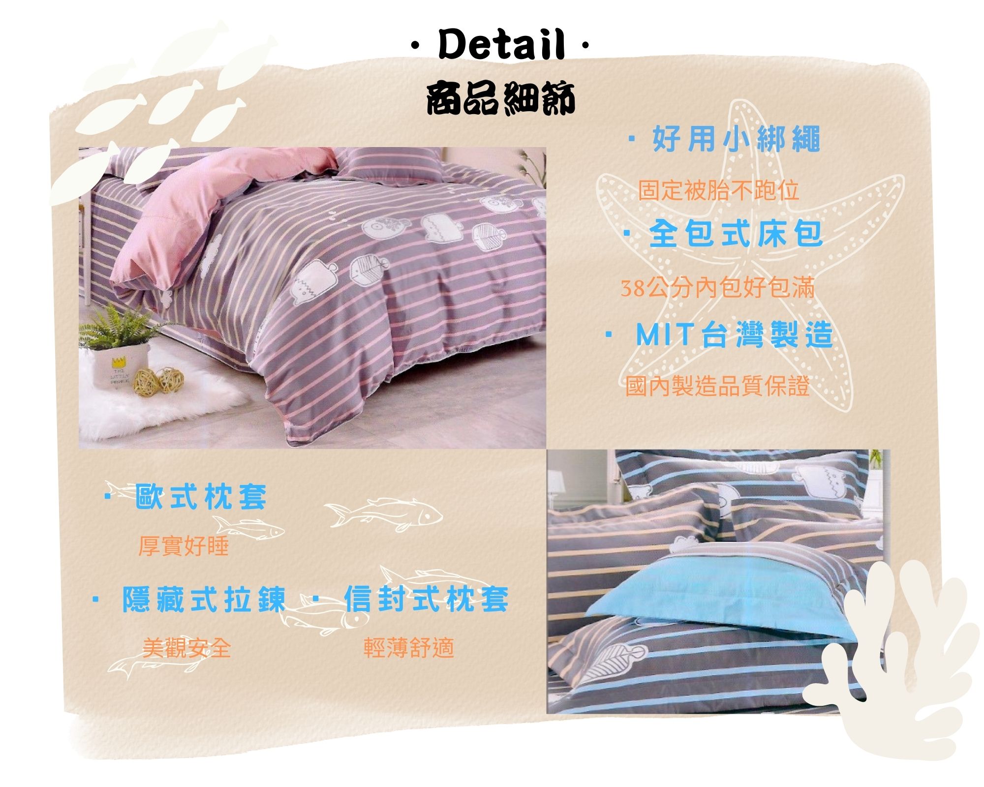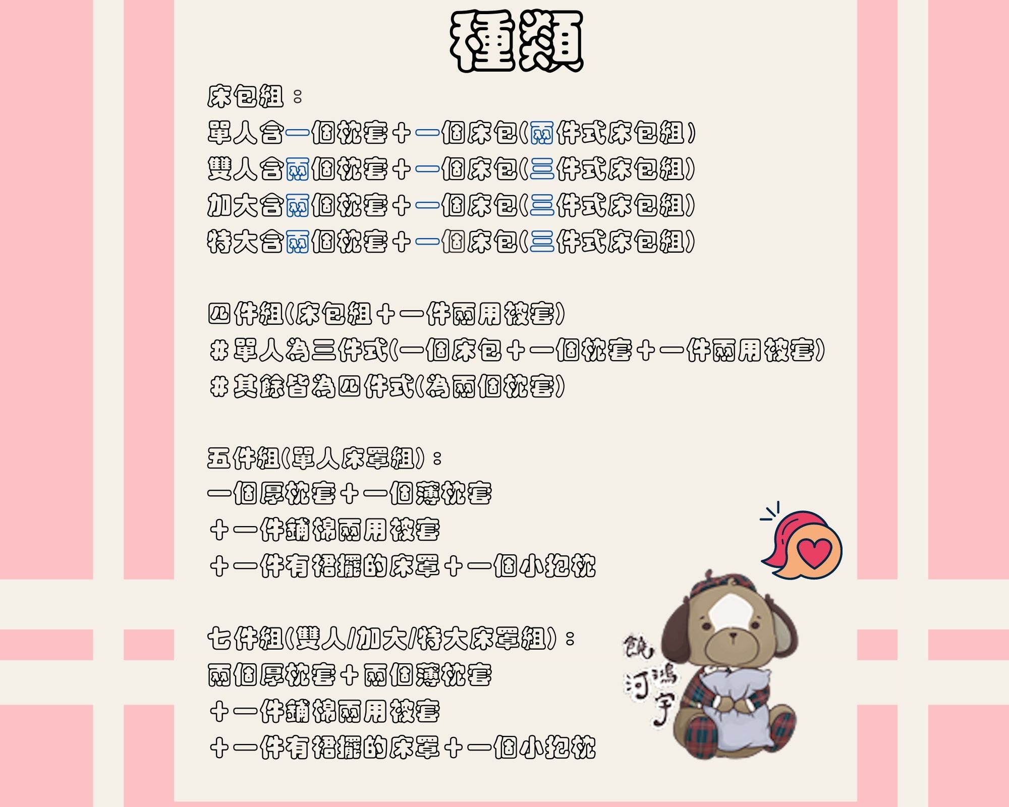 床罩組附超可愛糖果枕或小抱枕!