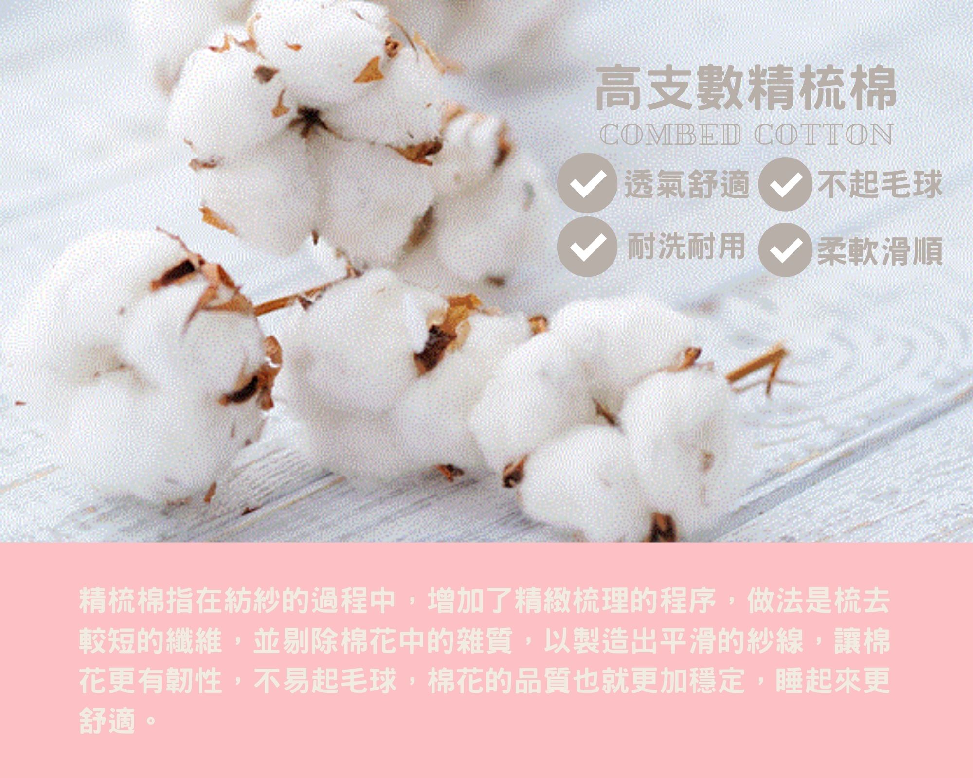 100%精梳棉:保暖舒服的材質,讓您睡得安心